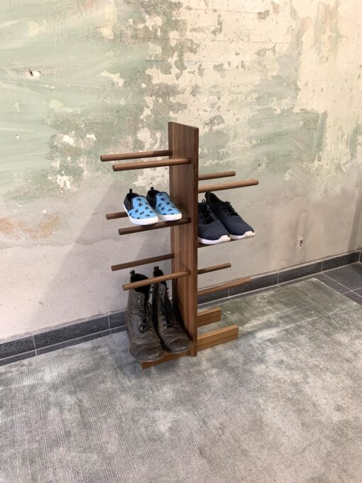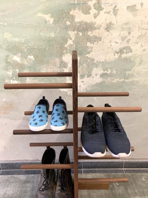 Our Empire Shoe Rack, new in May 2023, is available in three different sizes and wood finishes. With 8, 10, or 12 shelves, it offers an elegant and practical solution for storing your shoes.